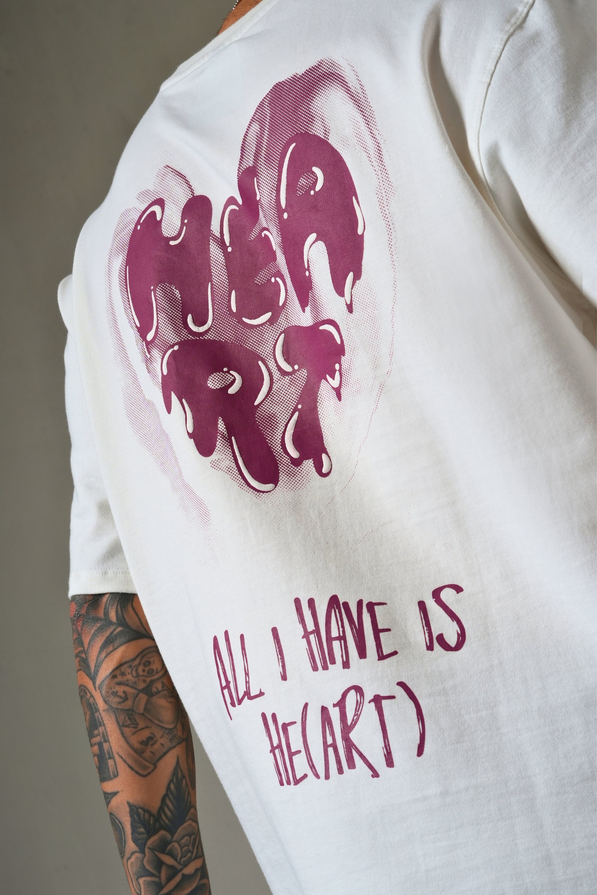 MONKEE “All I Have is Heart” Oversized Off-White T-Shirt – Premium 100% Cotton Streetwear Tee (Unisex, Screen & Puff Print)