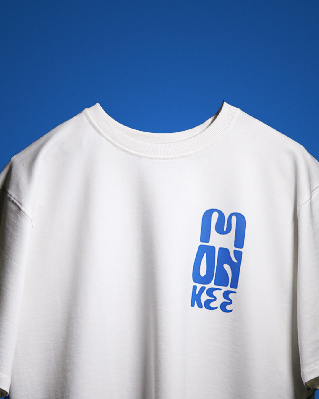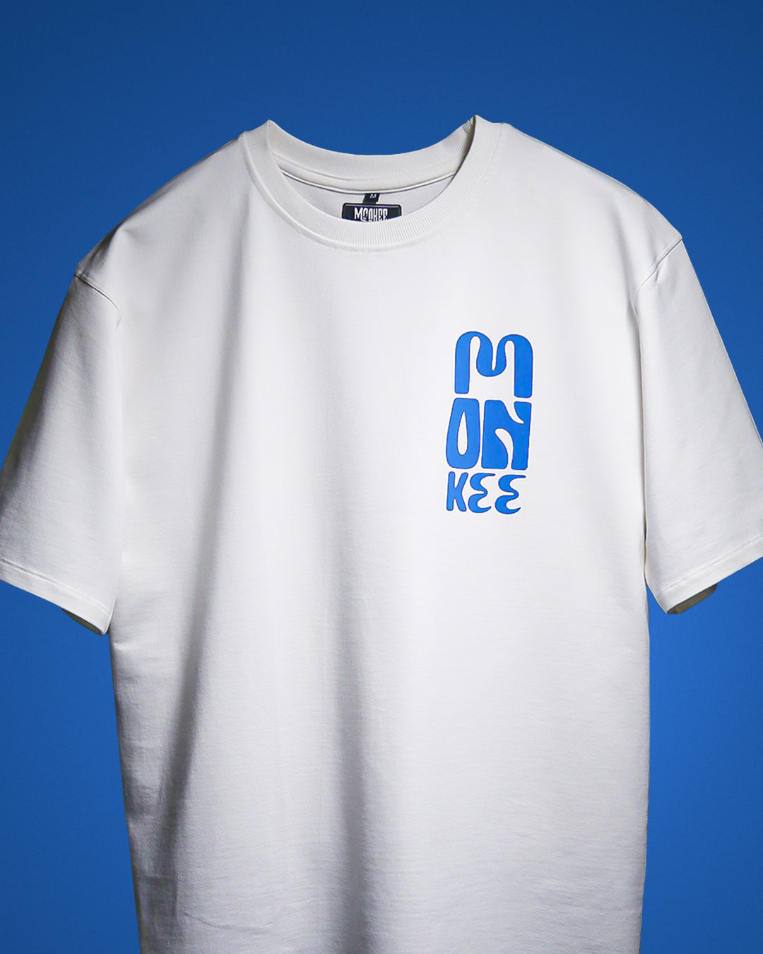 Designed with an oversized, unisex silhouette, it features relaxed shoulders and a boxy drape that delivers the modern streetwear look. The front chest print showcases MONKEE’s bold minimal branding, while the back design steals the show: dynamic wave lines screen-printed with precision, and a surfer on a board elevated through puff printing to create a textured, 3D effect that sets this tee apart.