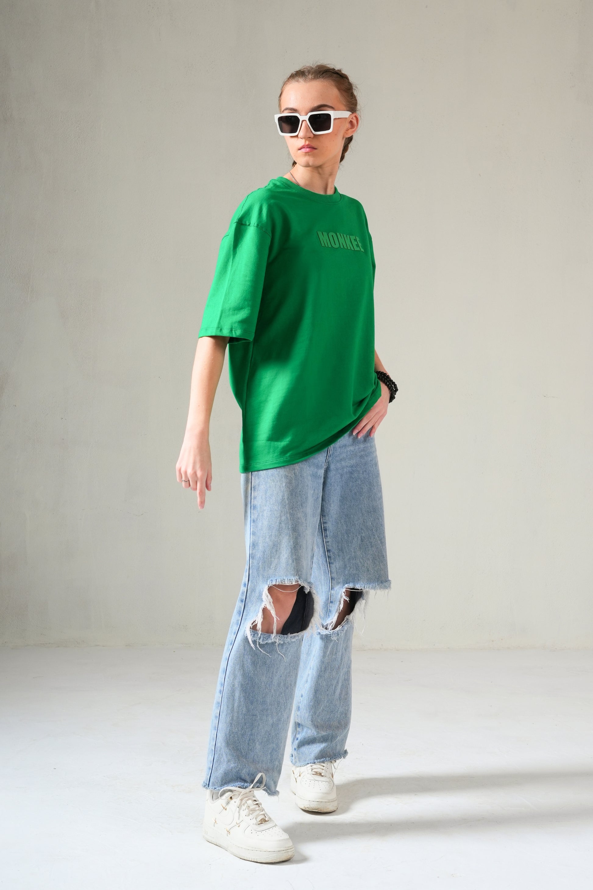 MONKEE ESSENTIALS OVERSIZED T-SHIRT - HEAVY FRENCH TERRY COTTON (GREEN)